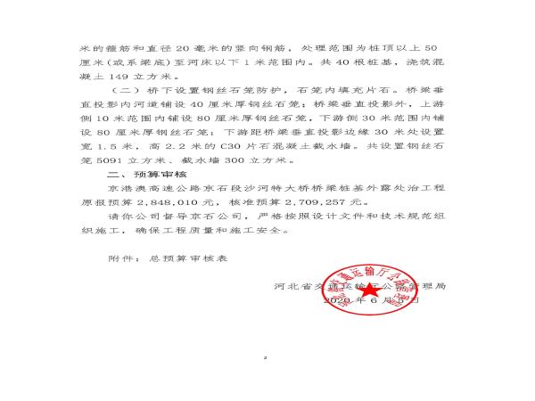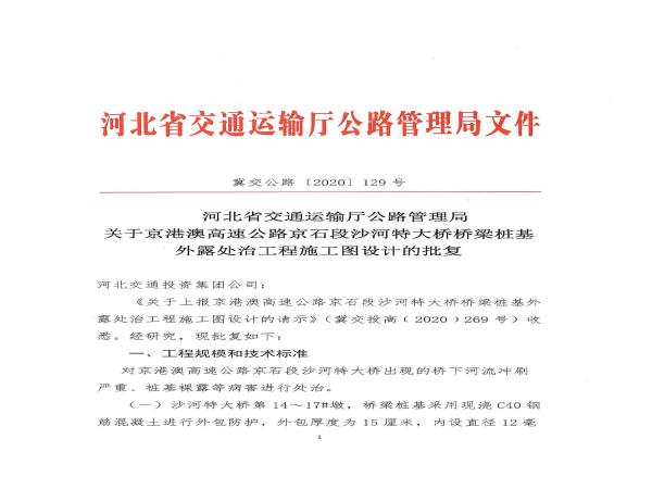 關(guān)于京港澳高速公路京石段沙河特大橋橋梁樁基外露處治工程施工圖設(shè)計(jì)的批復(fù)