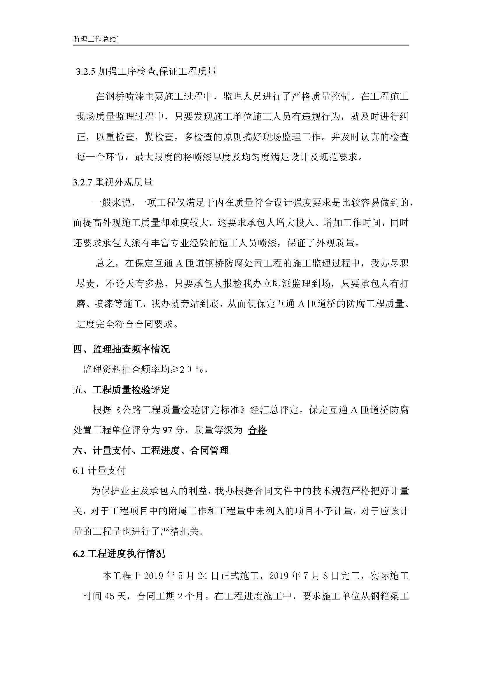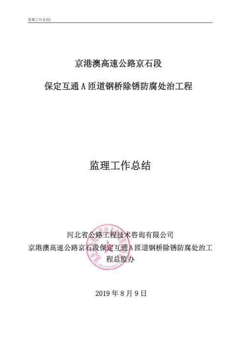 保定互通A匝道鋼橋除銹監(jiān)理報告