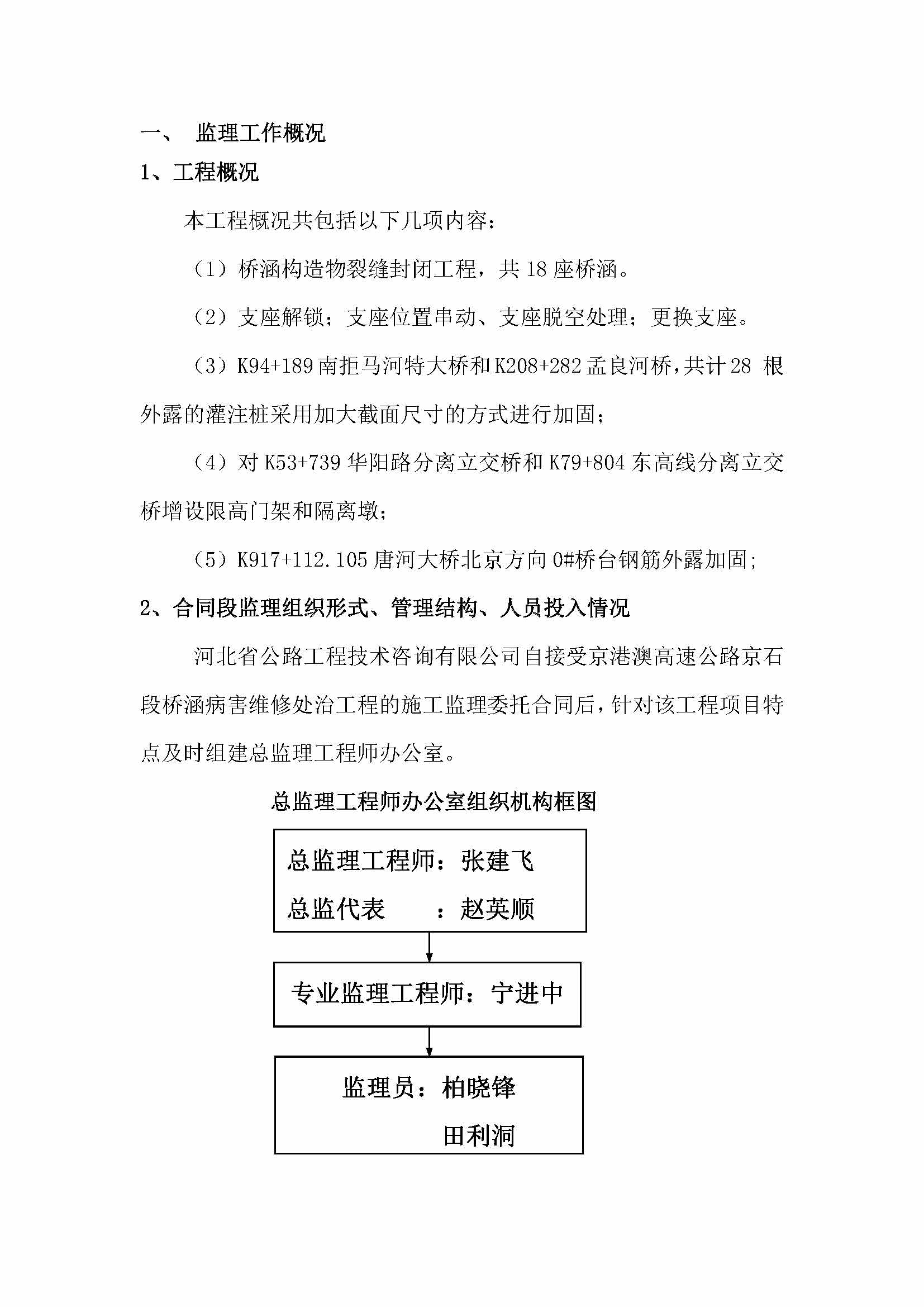 橋涵病害處治工程QH-1標(biāo)監(jiān)理報(bào)告