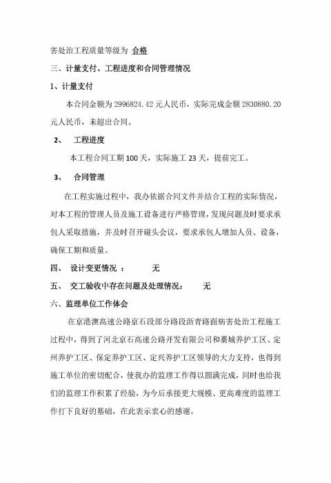 部分路段瀝青路面處治工程監(jiān)理報(bào)告