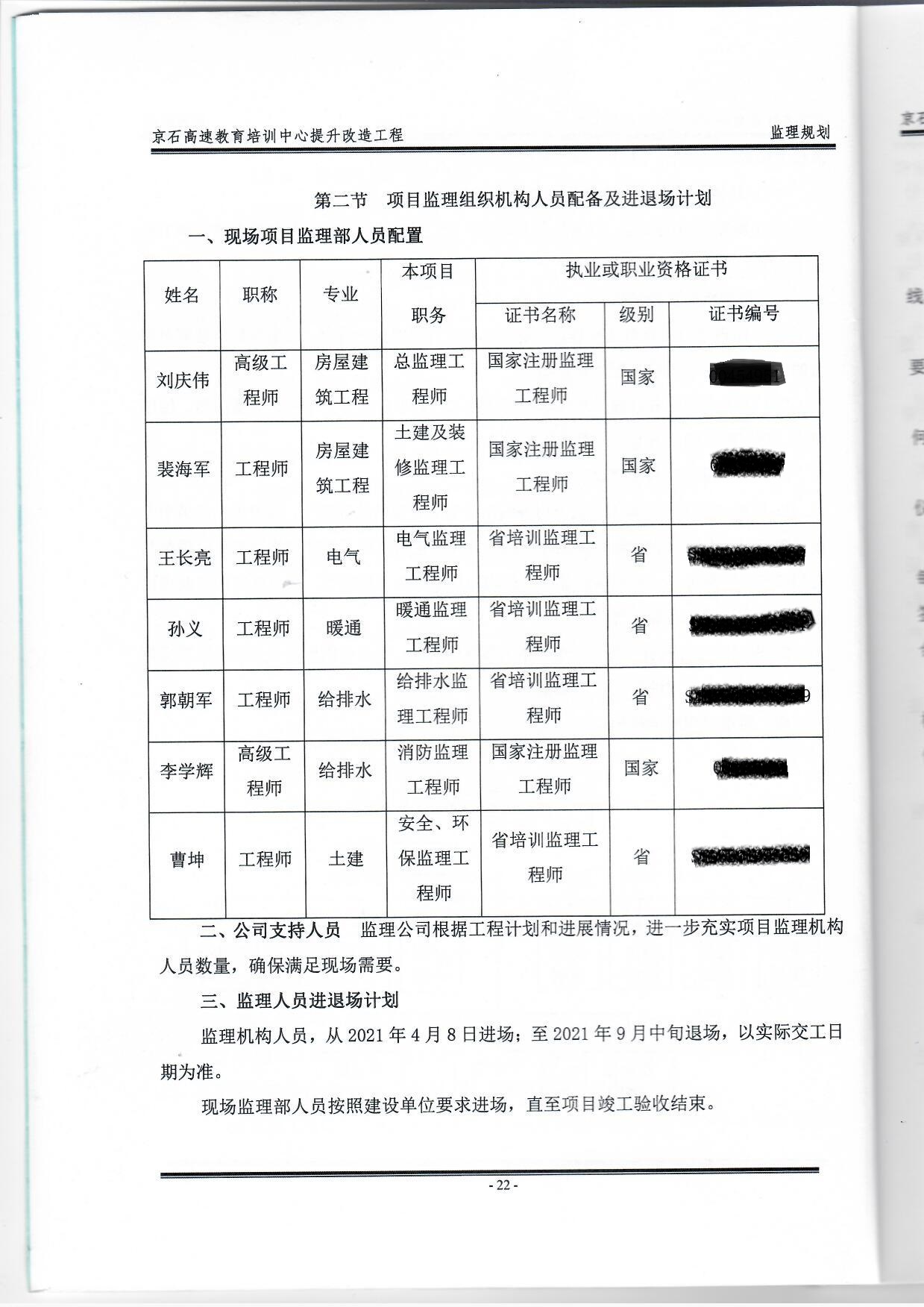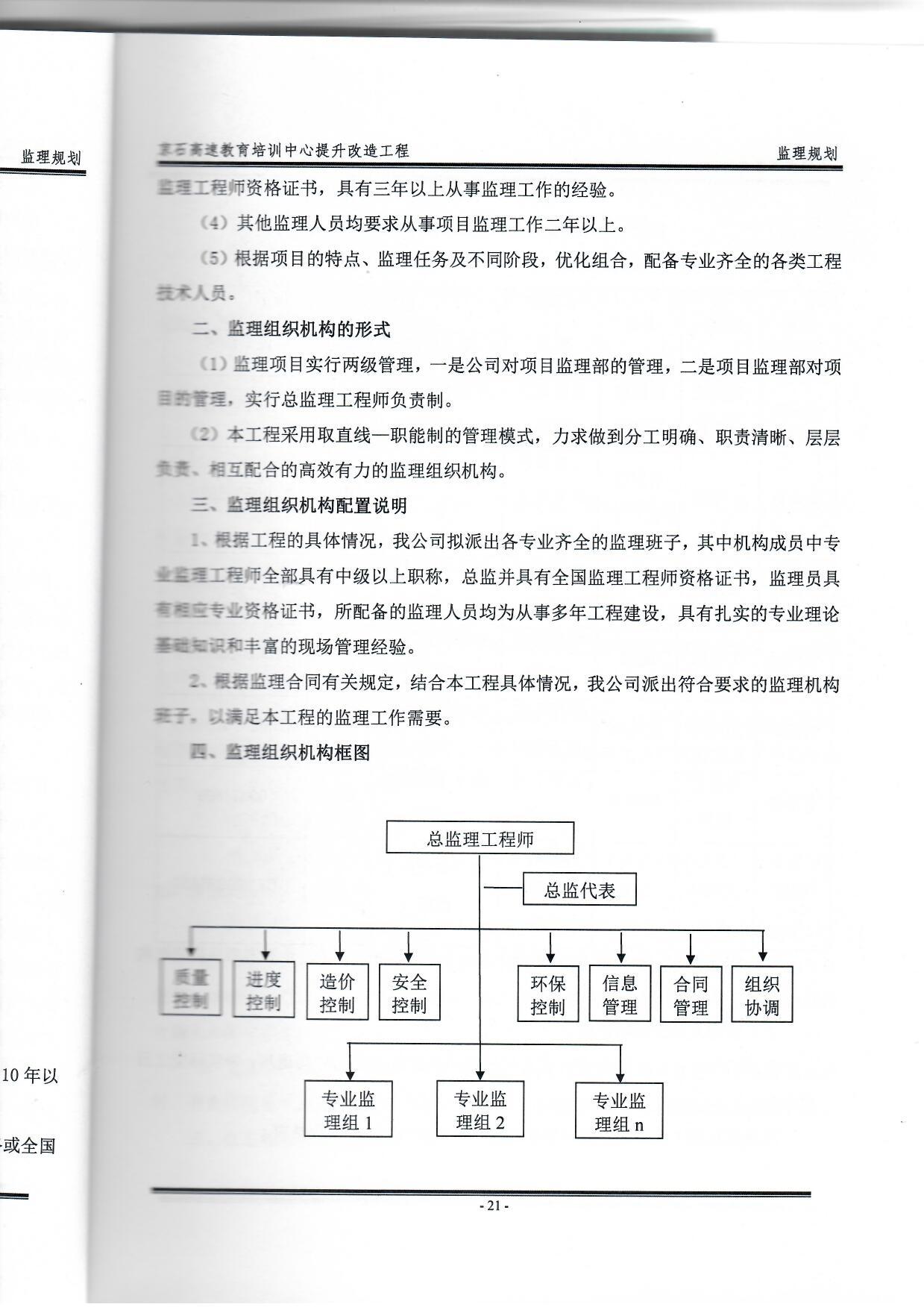 教育培訓中心提升改造工程監(jiān)理組織架構