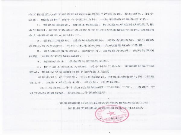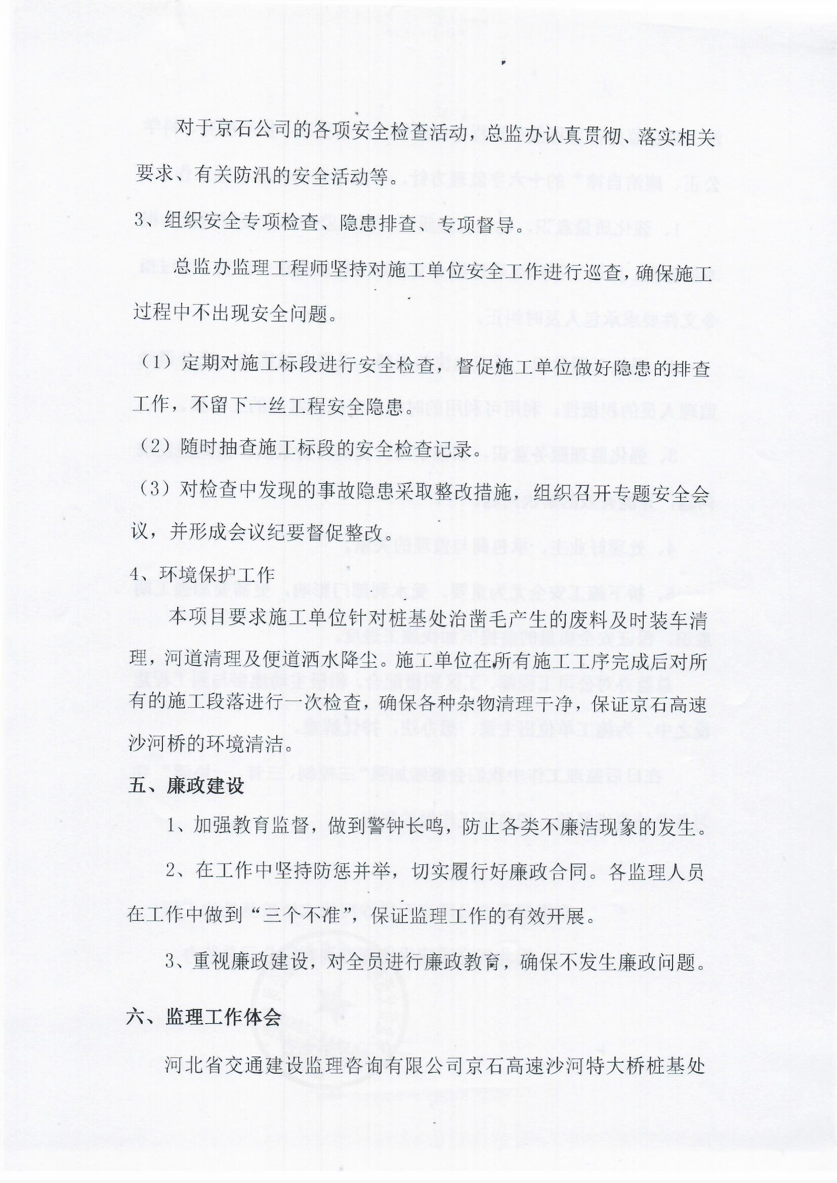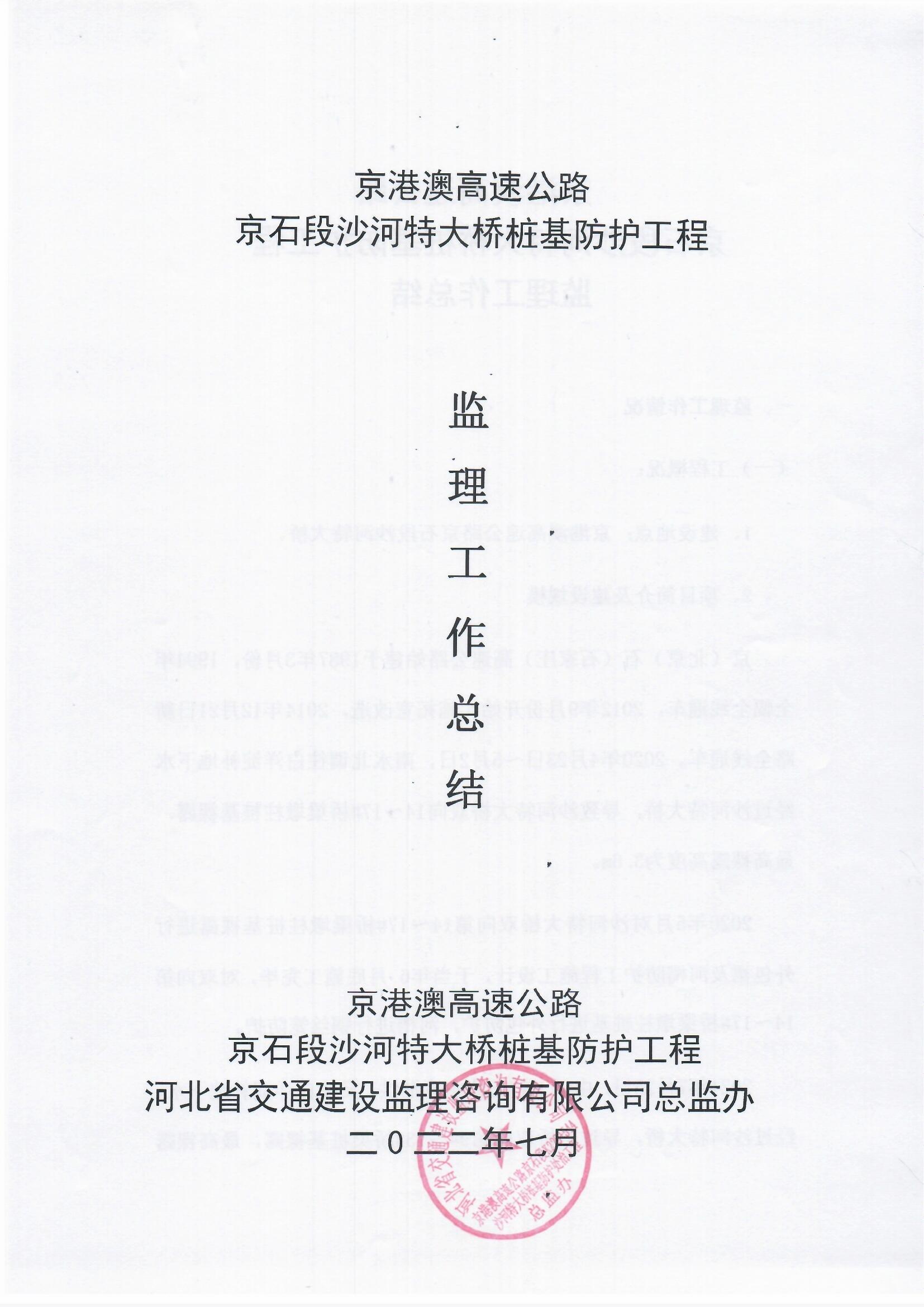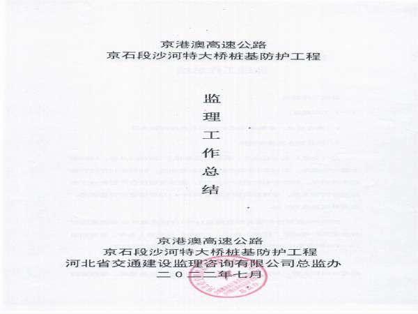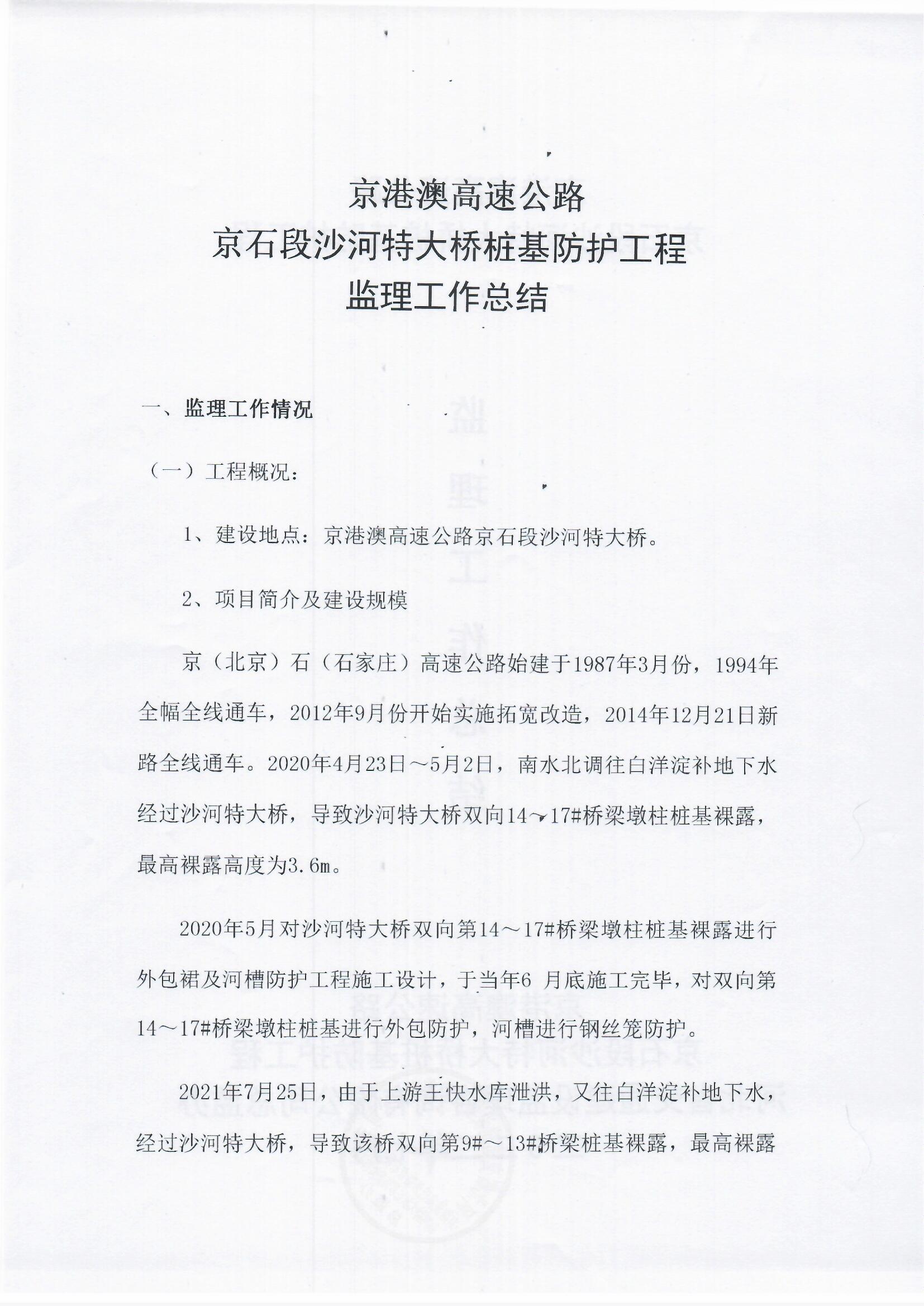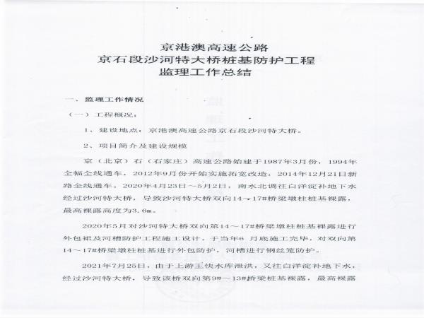 京港澳高速公路京石段沙河特大橋樁基防護(hù)處治工程監(jiān)理報告