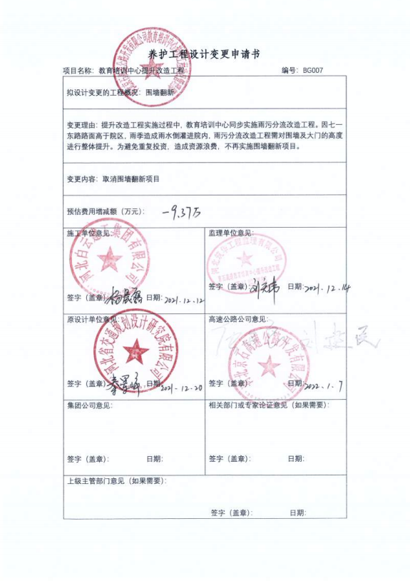 河北京石高速公路開發(fā)有限公司教育培訓(xùn)中心提升改造工程二期設(shè)計變更