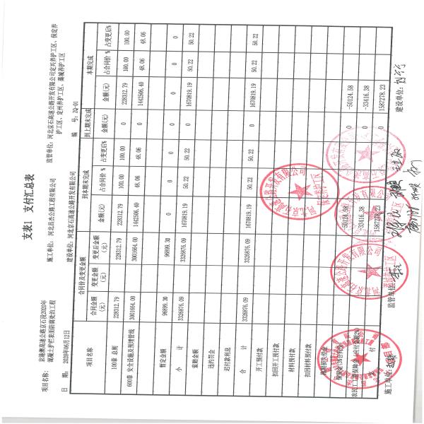 京港澳高速公路京石段2020年混凝土護(hù)欄表面防腐處治工程支付證書