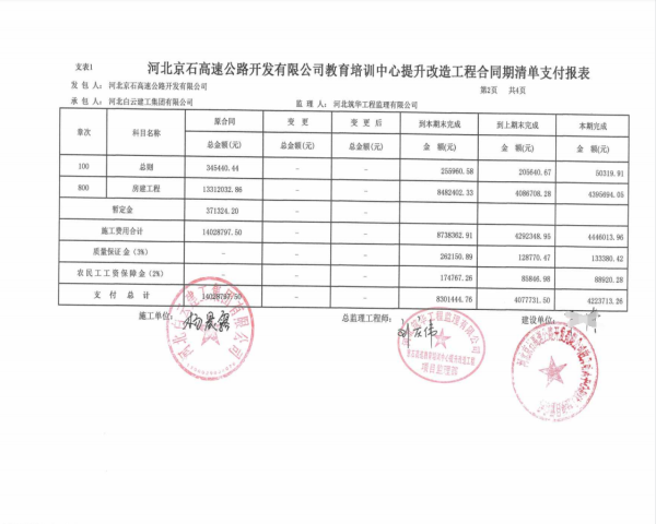 河北京石高速公路開發(fā)有限公司教育培訓(xùn)中心提升改造工程二期支付證書