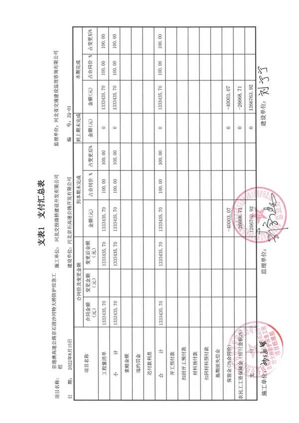 沙河特大橋樁基防護(hù)應(yīng)急工程支付證書
