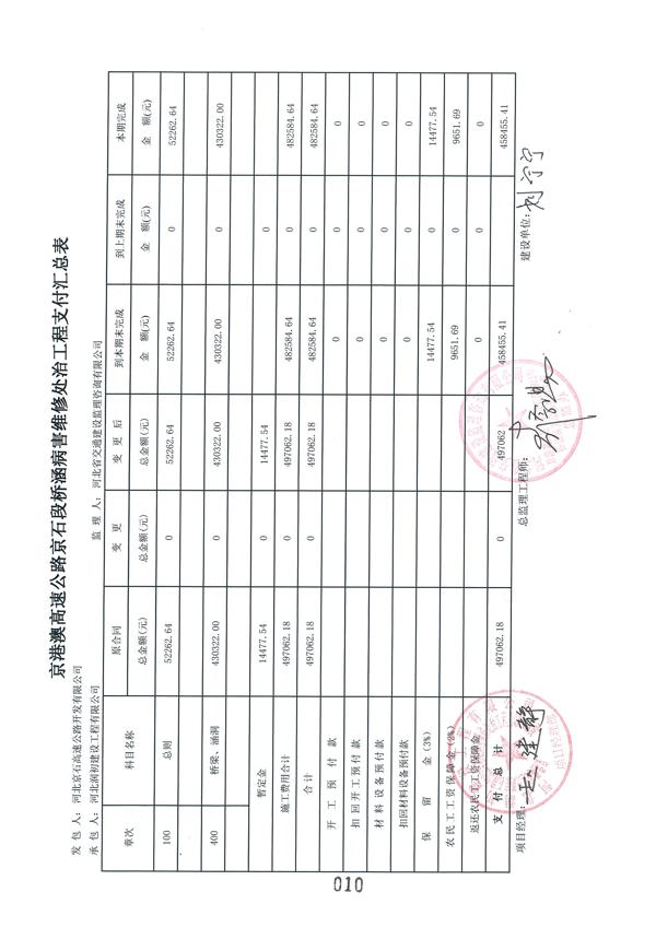 2022年橋涵病害維修處治工程QH-2標支付證書