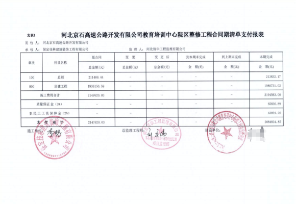 河北京石高速公路開(kāi)發(fā)有限公司教育培訓(xùn)中心院區(qū)整修工程工程款支付