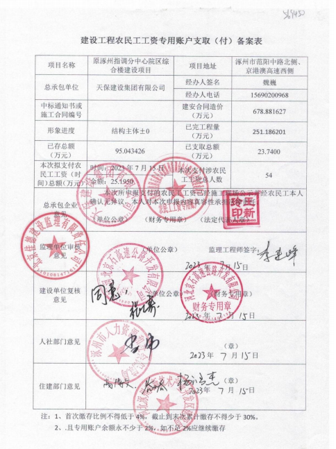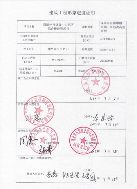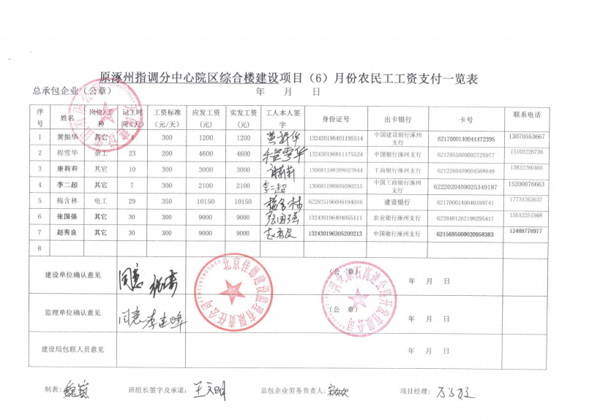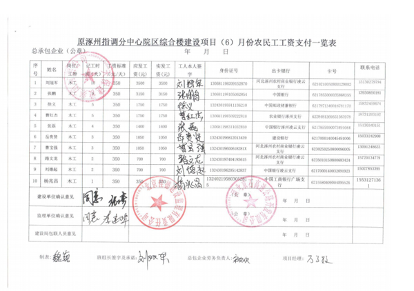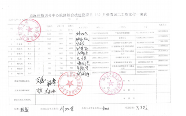 原涿州指調(diào)分中心綜合樓建設(shè)項目6月份農(nóng)民工工資發(fā)放公示