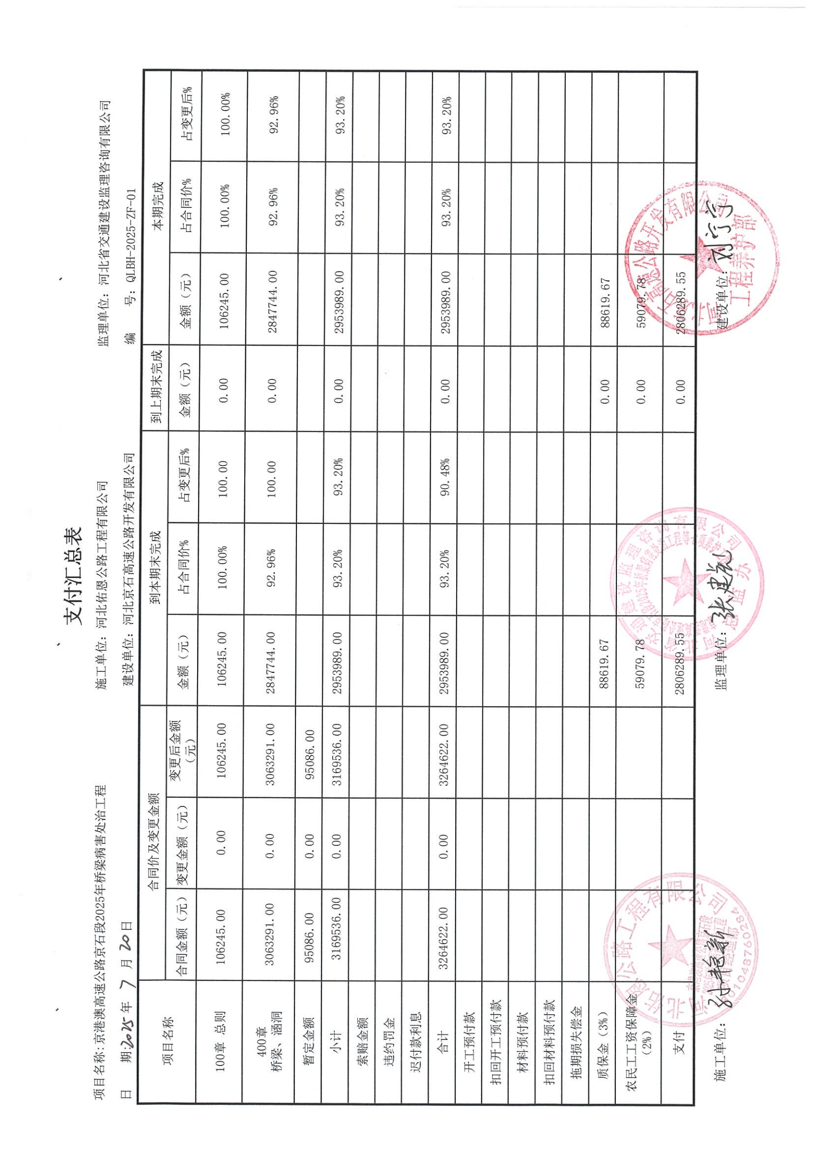 2025年橋梁病害處治工程支付證書