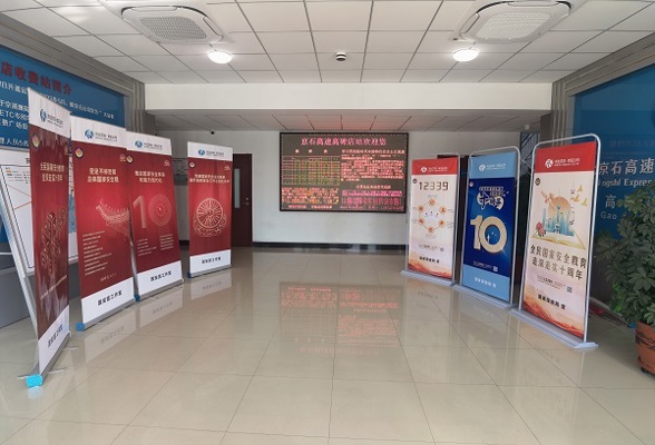 為擴大宣傳覆蓋面,營造濃厚氛圍,高碑店站在收費廣場設置咨詢臺,站內(nèi)擺放展板、懸掛橫幅,向過往司乘發(fā)放宣傳資料50余份,解答咨詢10余次;利用站內(nèi)電子顯示屏滾動播放宣傳標語與視頻;借助微信工作群、公眾號等新媒體平臺發(fā)布國家安全知識圖文、視頻,鼓勵職工積極轉(zhuǎn)發(fā),引導更多人關(guān)注國家安全。