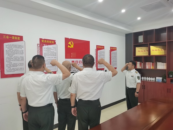 “我志愿加入中國(guó)共產(chǎn)黨,擁護(hù)黨的綱領(lǐng)……”在鮮紅的黨旗下,徐水站黨支部為支部黨員舉辦“迎七一”政治生日儀式。全體黨員重溫入黨誓詞,支部書記向過政治生日的黨員發(fā)放“政治生日學(xué)習(xí)教育書籍”。