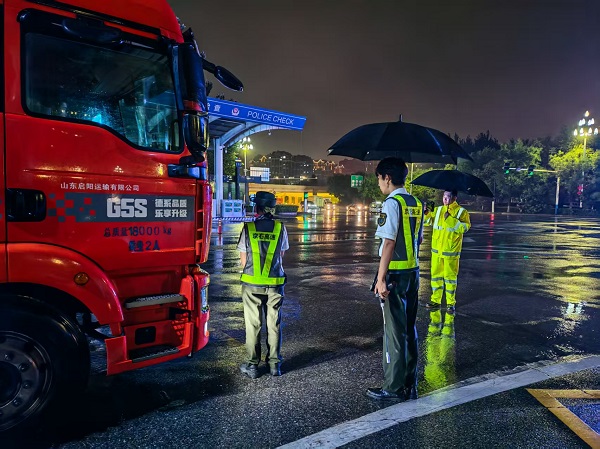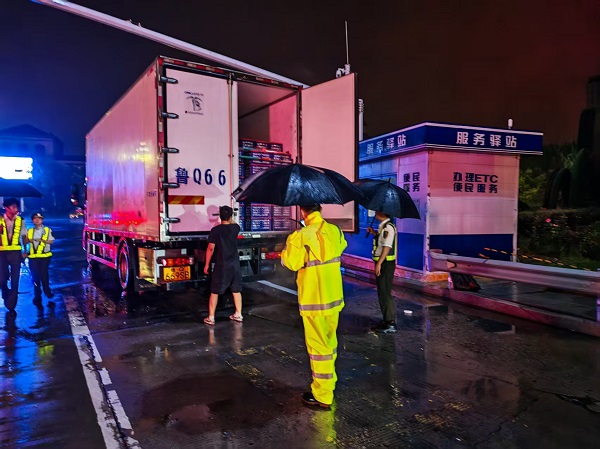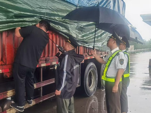 “綠通車輛車身重,雨天路滑易打滑,大家引導時務(wù)必站在安全區(qū)域,仔細核對證件和貨物信息!”突擊隊隊長的喊話雖被雨聲切割成碎片,卻清晰地傳到每個隊員耳中。而此時正值綠通車輛通行高峰,新鮮蔬菜、水果等物資運輸車源源不斷駛來。若因暴雨導致查驗效率下降,不僅會造成車道擁堵,更可能讓鮮活物資因延誤受損。突擊隊隊長一聲令下,幾名黨員迅速集結(jié),攜帶查驗工具、防滑墊、警示錐等物資,沖向雨勢最猛的收費廣場。
