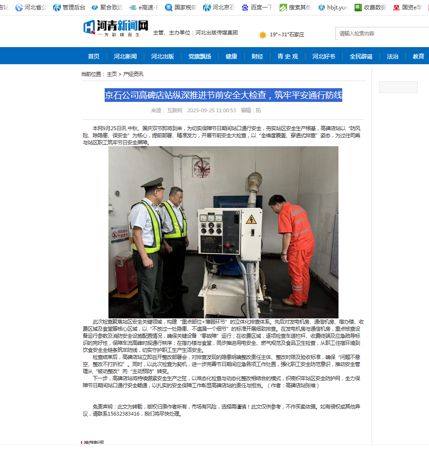 【河青新聞網(wǎng)】京石公司高碑店站縱深推進(jìn)節(jié)前安全大檢查,筑牢平安通行防線