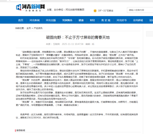 【河青新聞網(wǎng)】破圈向野:不止于方寸屏幕的青春天地