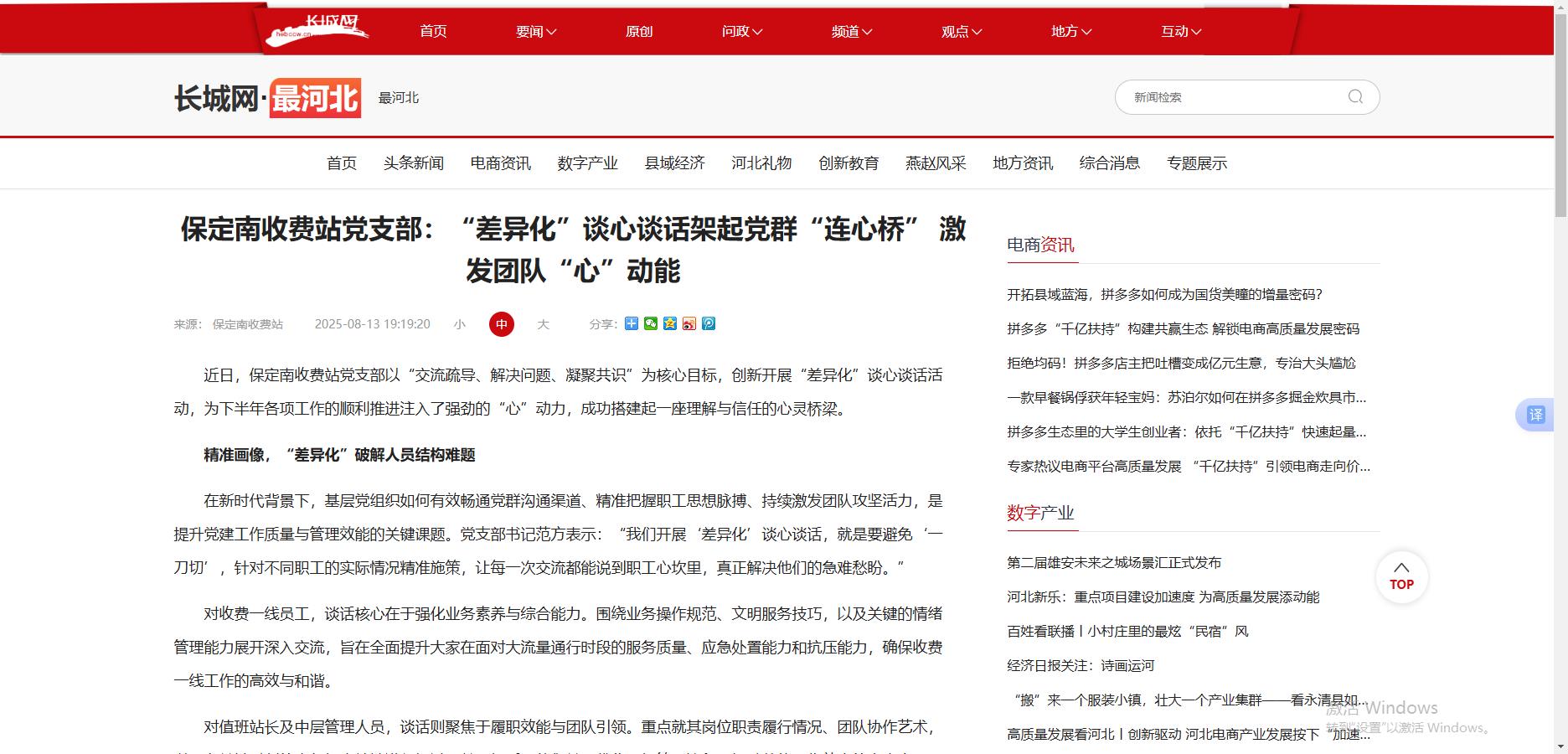 【長城網(wǎng)最河北】保定南收費站黨支部:“差異化”談心談話架起黨群“連心橋” 激發(fā)團隊“心”動能