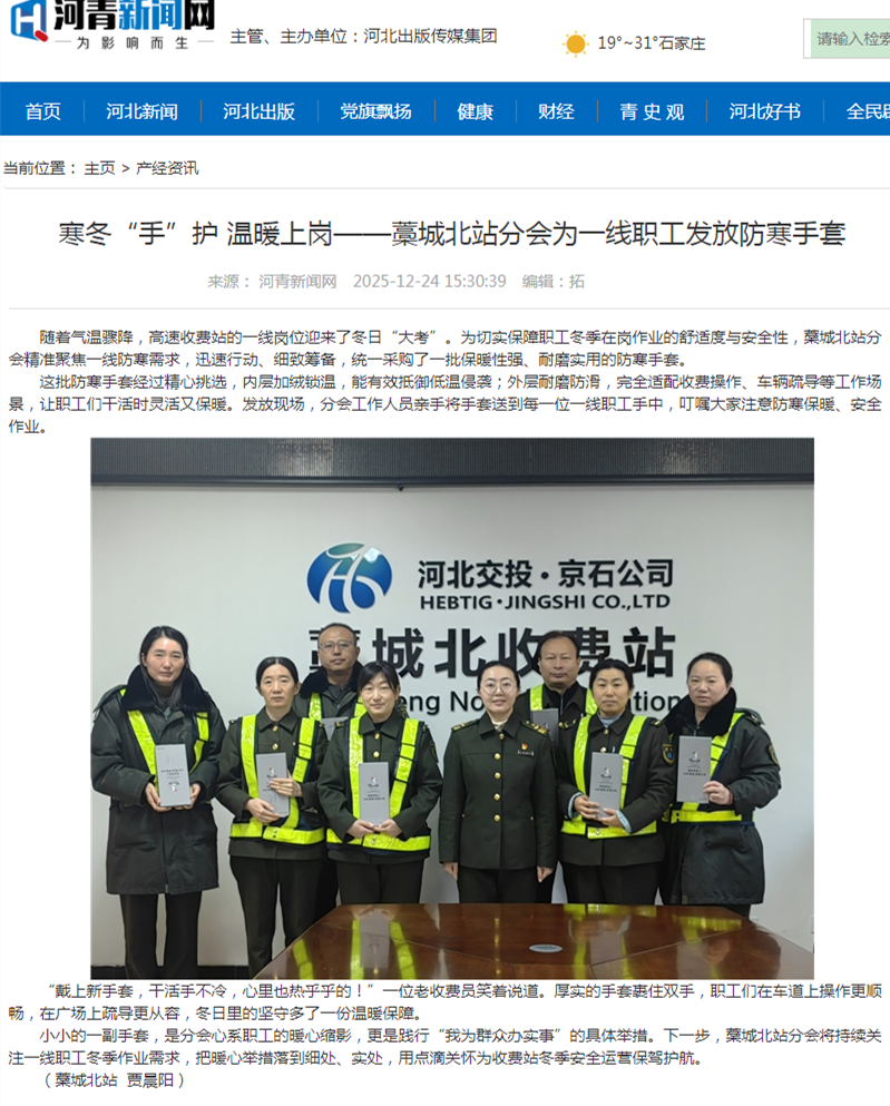 【河青新聞網(wǎng)】寒冬“手”護 溫暖上崗——藁城北站分會為一線職工發(fā)放防寒手套