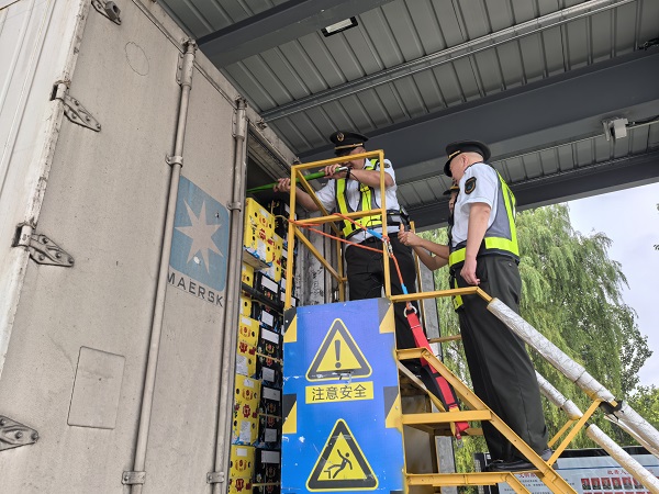 為直觀檢驗設(shè)備性能,宋罡在工作人員的操作演示下,全程觀察長桿式綠通檢驗儀針對多輛不同類型綠通車的檢測過程。當看到設(shè)備精準捕捉車廂內(nèi)貨物細節(jié)、快速完成查驗判斷后,他對新設(shè)備的實際應(yīng)用效果予以認可,并提出工作要求,高碑店站要進一步開放“京石桿”的試用工作,在實際使用過程中積累數(shù)據(jù)與試用經(jīng)驗,為“京石桿”的進一步優(yōu)化提供改進建議。同時,在實際使用過程中積累數(shù)據(jù)與試用經(jīng)驗,熟練掌握設(shè)備操作技巧,充分發(fā)揮新設(shè)備的技術(shù)優(yōu)勢,持續(xù)提升綠通查驗效率與準確性,切實保障綠通政策精準落實。