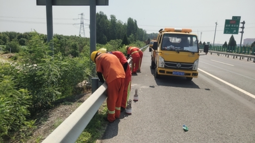 7月19日,京石公司再次詢問了保阜公司兩波鋼護(hù)欄板墊塊的修復(fù)情況,保阜公司表示需要更多人員的援助,在保障養(yǎng)護(hù)工作順利開展的情況下,京石公司統(tǒng)籌定興工區(qū)和藁城工區(qū)的技術(shù)人員繼續(xù)馳援保阜公司施工修復(fù)現(xiàn)場(chǎng)。