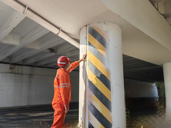 按照現(xiàn)行的交安設施的規(guī)范標準,橋梁工程師對橋梁的防拋網、豎向防墜網、上跨橋的立面標記及墩柱防護等部位進行了全面排查,逐一統(tǒng)計被交道倒斜、缺失的標志標牌,磨損嚴重、模糊不清的標牌標識,銹蝕缺損的防護網,確保排查全面到位。