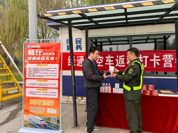 為積極響應(yīng)公司“一站一特色”引流活動(dòng)號(hào)召,加速推進(jìn)“空車配載”專項(xiàng)工作,高碑店收費(fèi)站作為綠通運(yùn)輸樞紐大站,于11月5日在站口開(kāi)展“綠通車空車返程打卡營(yíng)銷”活動(dòng),以“看得見(jiàn)的實(shí)惠”精準(zhǔn)吸引綠通返程空車選擇高速公路,全力沖刺年度目標(biāo)任務(wù)。