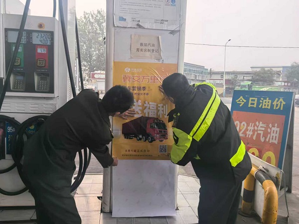 隨后,引流小組在海油加油站現(xiàn)場設(shè)立宣傳點(diǎn),向過往加油的貨車司機(jī)們積極宣傳“冀交萬里行”貨車營銷活動。工作人員通過發(fā)放宣傳彩頁、現(xiàn)場講解、手把手指導(dǎo)注冊等方式,耐心向司機(jī)師傅們介紹小程序的注冊流程及使用方法,讓大家直觀感受到各項(xiàng)福利政策。同時(shí),引流小組還重點(diǎn)推廣了“空車配載”服務(wù),詳細(xì)解釋了該服務(wù)如何幫助司機(jī)快速匹配貨源、減少空駛里程、增加運(yùn)輸收入,實(shí)現(xiàn)“貨找車、車找貨”的高效匹配,真正做到“一站直達(dá)”的高效物流體驗(yàn)。