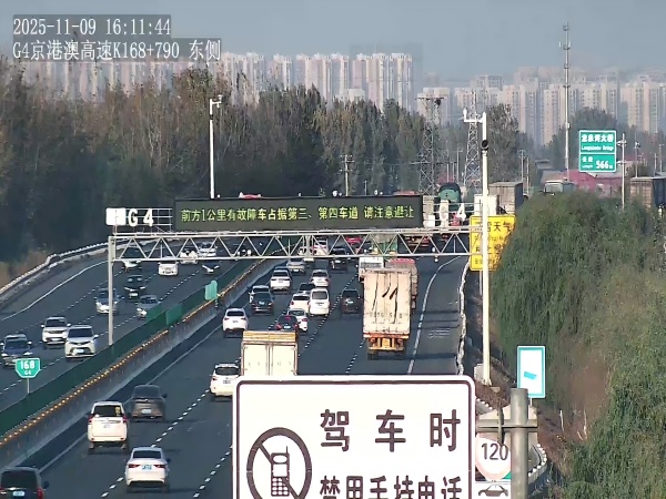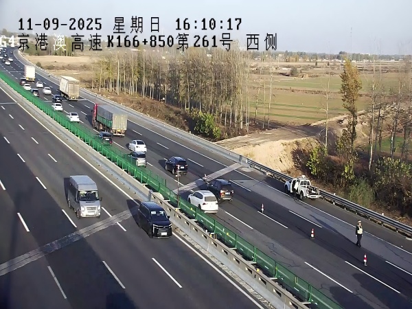 15時(shí)50分,在京石高速K166+850處,一輛大貨車因爆胎??啃熊嚨馈V腔壅{(diào)度中心的智能視頻監(jiān)測系統(tǒng)立即識(shí)別異常并自動(dòng)報(bào)警。監(jiān)控員接報(bào)后,迅速鎖定事件準(zhǔn)確位置,通過沿線情報(bào)板發(fā)布警示信息,并同步調(diào)度附近交警和救援車輛趕赴現(xiàn)場。