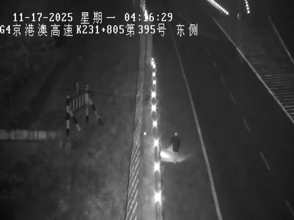 2025年11月17日3時(shí)57分,智慧調(diào)度監(jiān)控中心接到省中心電話通知,京石高速石家莊方向K233處快車(chē)道有行人走動(dòng),行人在車(chē)道走動(dòng)不僅違反了高速公路管理規(guī)定,更將自身生命安全置于險(xiǎn)境,同時(shí)也對(duì)過(guò)往車(chē)輛造成干擾,極易引發(fā)交通事故。