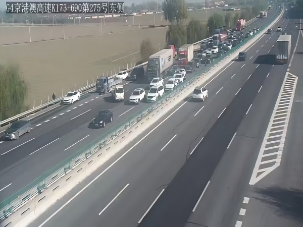 11月15日11時(shí)25分,智慧調(diào)度中心監(jiān)控人員通過視頻巡檢發(fā)現(xiàn),京石高速南行K173處發(fā)生兩輛貨車追尾事故,占據(jù)兩條車道,導(dǎo)致后方車流積壓,現(xiàn)場(chǎng)通行緩慢且風(fēng)險(xiǎn)加劇。