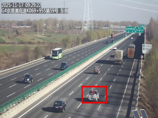 9時(shí)40分,第一養(yǎng)護(hù)工區(qū)工作人員抵達(dá)事發(fā)地點(diǎn),迅速開展應(yīng)急清理作業(yè):工作人員規(guī)范設(shè)置安全警示區(qū)域后,快速將散落的金屬梯子拖移至應(yīng)急車道,隨后高效完成路面清理及安全隱患排查,確保道路通行條件全面恢復(fù)。與此同時(shí),溯源調(diào)查工作也在緊鑼密鼓推進(jìn)。因掉落障礙物處于監(jiān)控?cái)z像頭盲區(qū),無法直接捕捉到具體掉落車輛,監(jiān)控員及時(shí)轉(zhuǎn)變排查思路,通過調(diào)取沿線監(jiān)控視頻,重點(diǎn)篩查載有金屬梯子的貨車軌跡,并逐一對(duì)比障礙物出現(xiàn)前后的鏡頭畫面,核查貨車裝載情況。經(jīng)過半小時(shí)的細(xì)致篩查與精準(zhǔn)比對(duì),監(jiān)控員在K69+955路段監(jiān)控鏡頭下發(fā)現(xiàn)一輛藍(lán)牌小貨車,其車廂內(nèi)明確載有同款金屬梯子;而在K69+005路段的后續(xù)監(jiān)控畫面中,該貨車車廂內(nèi)的梯子已消失不見。據(jù)此,成功鎖定車牌號(hào)為冀FZXXXX的嫌疑車輛,并迅速整合車輛通行軌跡、全程監(jiān)控視頻、現(xiàn)場(chǎng)處置照片等關(guān)鍵證據(jù),構(gòu)建形成完整閉環(huán)的證據(jù)鏈,第一時(shí)間反饋至高速交警涿州大隊(duì)。交警部門隨即對(duì)責(zé)任車輛駕駛?cè)碎_展交通安全警示教育,壓實(shí)安全主體責(zé)任。
