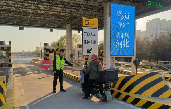 2025年11月19日,京石高速涿州收費(fèi)站工作人員成功勸阻一名欲騎電動(dòng)車上高速送餐的外賣員,經(jīng)過(guò)工作人員的耐心勸導(dǎo),最終通過(guò)合規(guī)方式配送,既守住了交通安全底線,又解決了外賣員的燃眉之急。