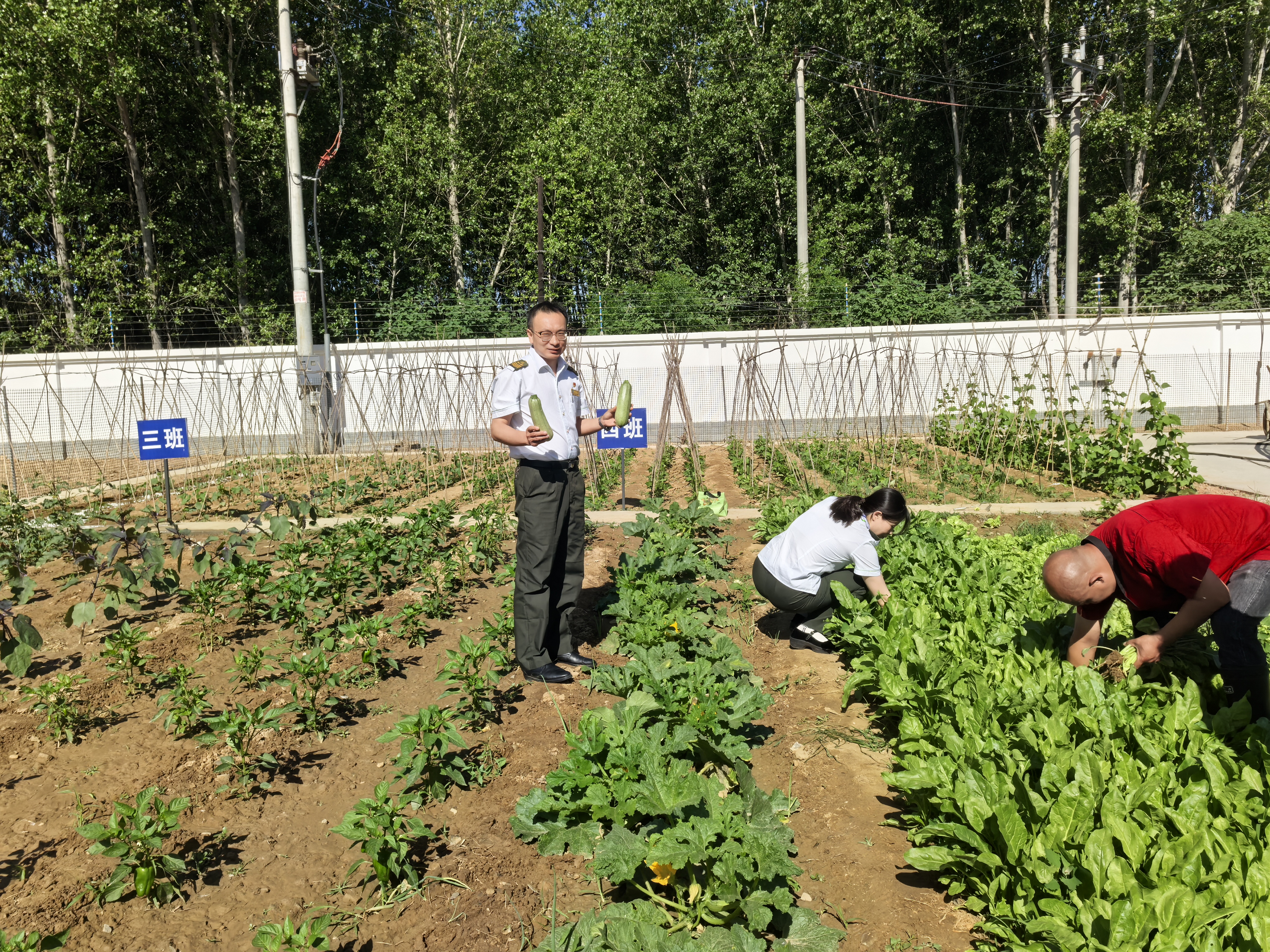 這片職工菜園于今年年初升級(jí)改造完成,旨在豐富職工的業(yè)余生活,提升職工的幸福感和歸屬感。在健康城站分會(huì)的精心組織下,職工們以班組為單位,利用休息時(shí)間參與種植、養(yǎng)護(hù)工作。大家分工合作,翻土、播種、澆水、施肥,將對(duì)生活的熱愛(ài)融入每一寸土地。經(jīng)過(guò)數(shù)月的悉心照料,菜園里西葫蘆、青菜等茁壯成長(zhǎng),宛如一片綠色的海洋。