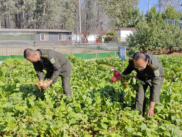 這片菜園從春日開始,便承載著一群人的期盼。翻土、育苗、澆水、搭架,員工們利用工余時間,悉心經(jīng)營。如今,園里已是一番豐饒景象,大白菜舒展著寬大的翠葉,敦實的南瓜在藤葉間若隱若現(xiàn),紅蘿卜與白蘿卜也從松軟的泥土中探出飽滿的身形,靜待采收。